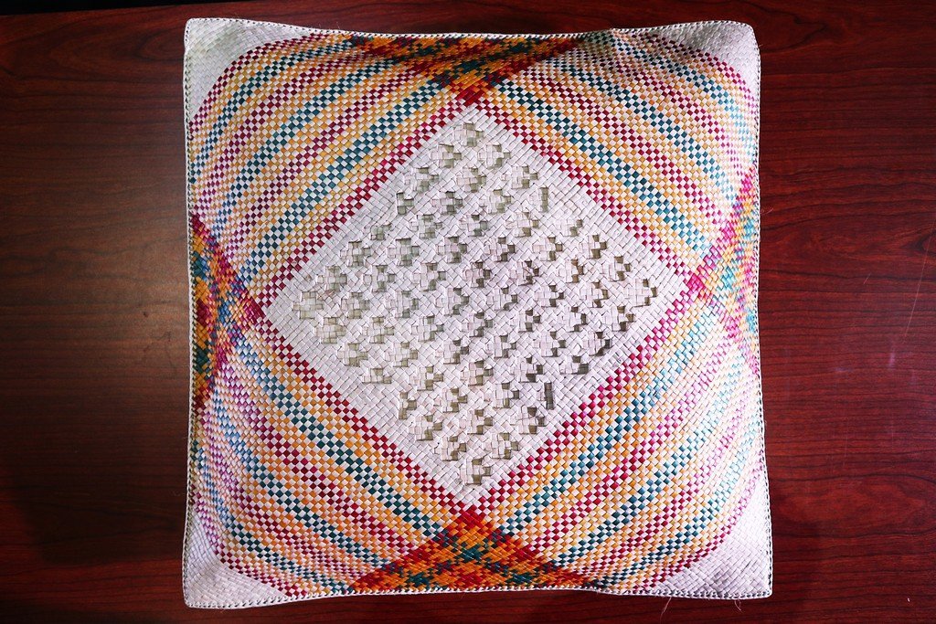 Bantal kursi ciri khas anyaman pandan Aceh yang sangat halus dan teknik anyam yang khas. diabadikan dalam sarung bantal kekinian yang tetap terasa ciri aceh nya.