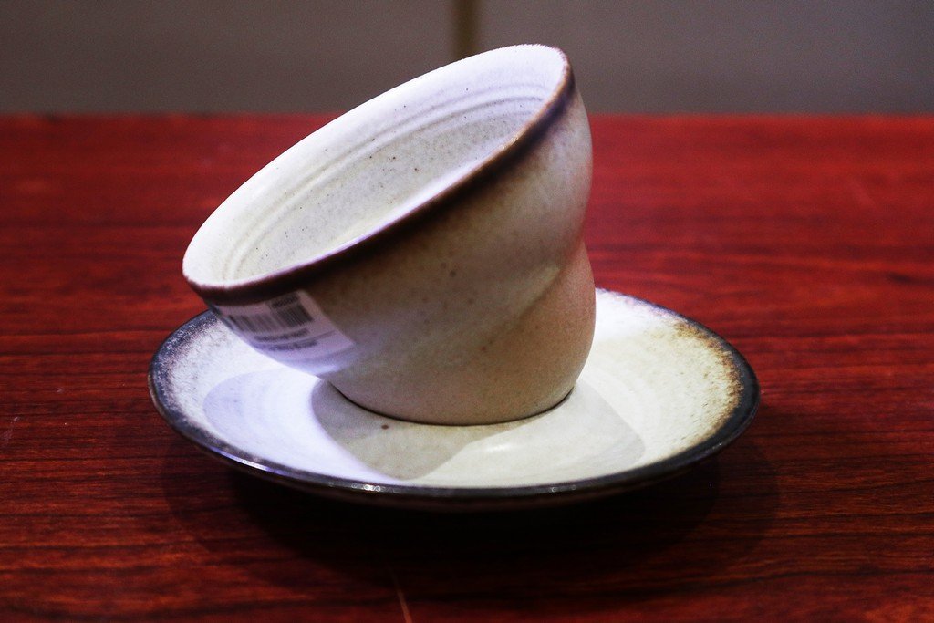 Cangkir kopi espresso ini di design sangat unik dengan bentuk kerucut dilengkapi tatakan atau piring kecil berlubang sebagai penopang yang mempercantik penampilan, komposisi warna yang menarik menambah keindahan sebuah cangkir kopi.